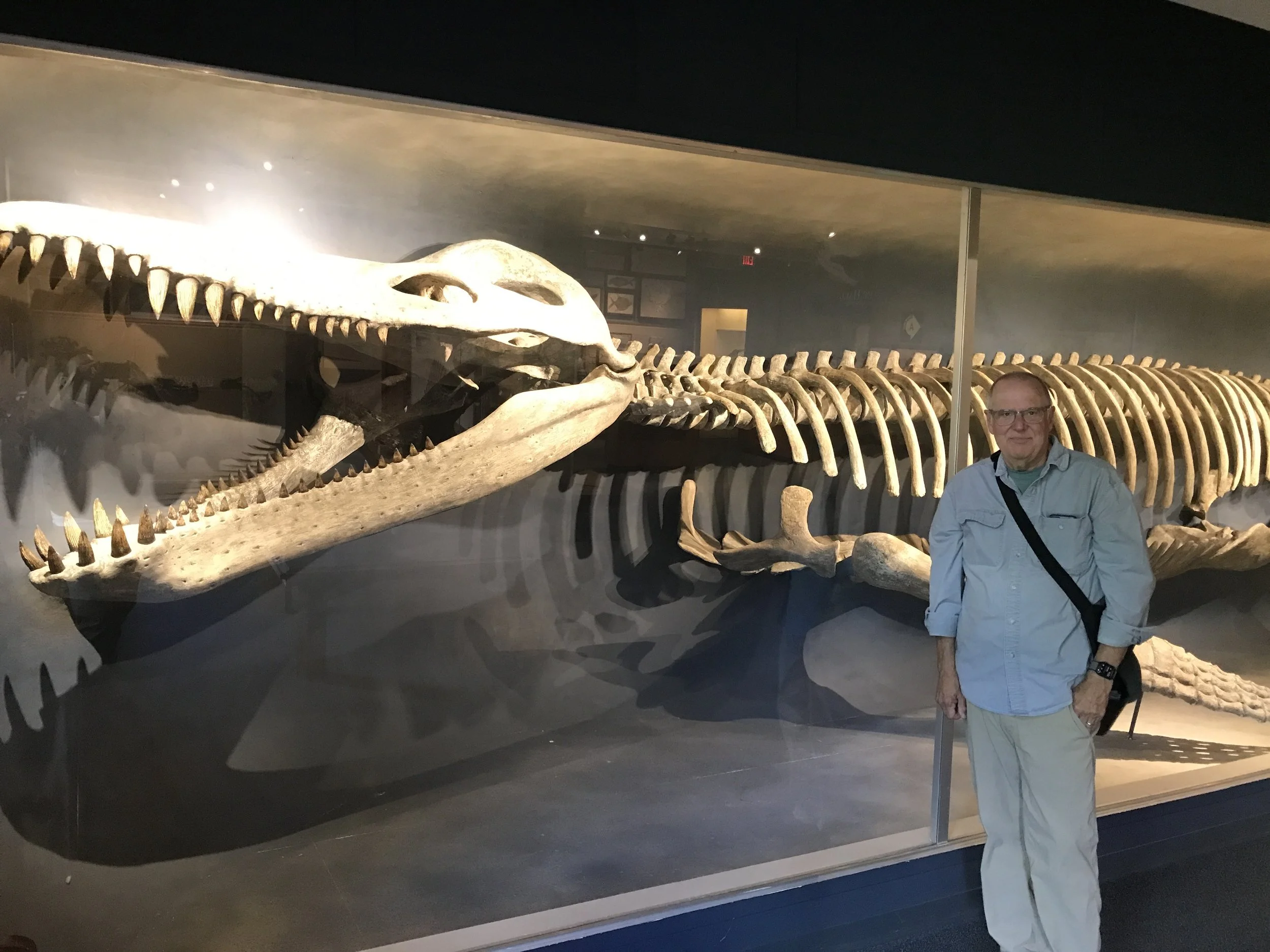 Moving a little farther up on the evolutionary ladder, here’s a homo sapien and a Plesiosaurus.