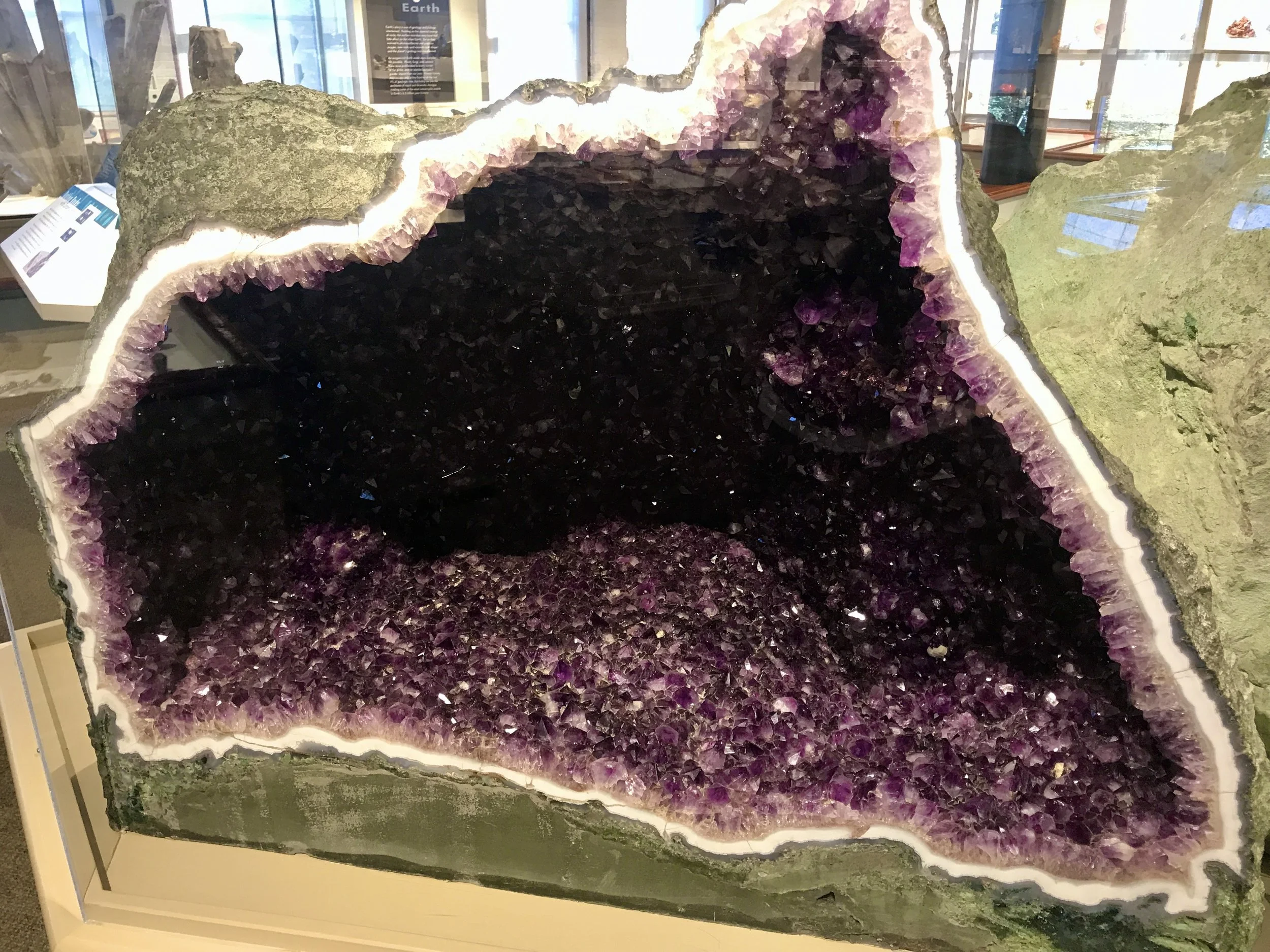 This giant 1,600 pound amethyst geode dominates the mineral and precious stones collection.